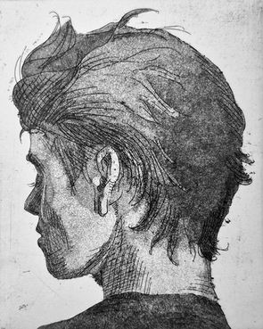 Etching is a printmaking technique that dates back hundreds of years. A waxy ground is rolled onto a metal plate which is then drawn into with a needle. The drawing exposes the metal below the wax so that when the plate is dipped into acid the marks are etched, creating grooves for ink to sit which is then printed on paper using a press.
